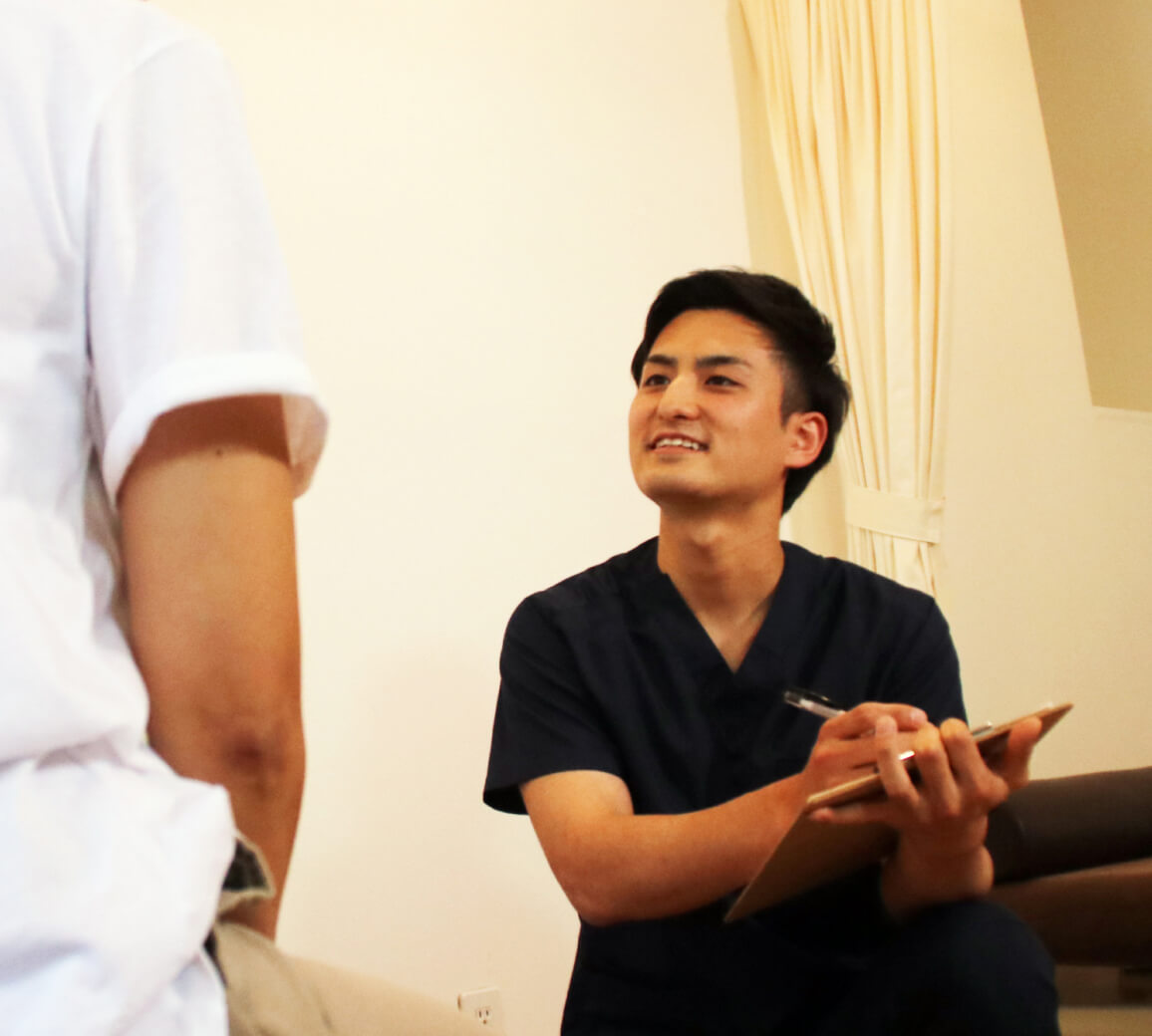 カウンセリングシートに合わせて、日常生活で痛みを感じるタイミングや困りごと、足底腱膜炎の症状、足底腱膜炎の経過などのお話をお伺いいたします。
