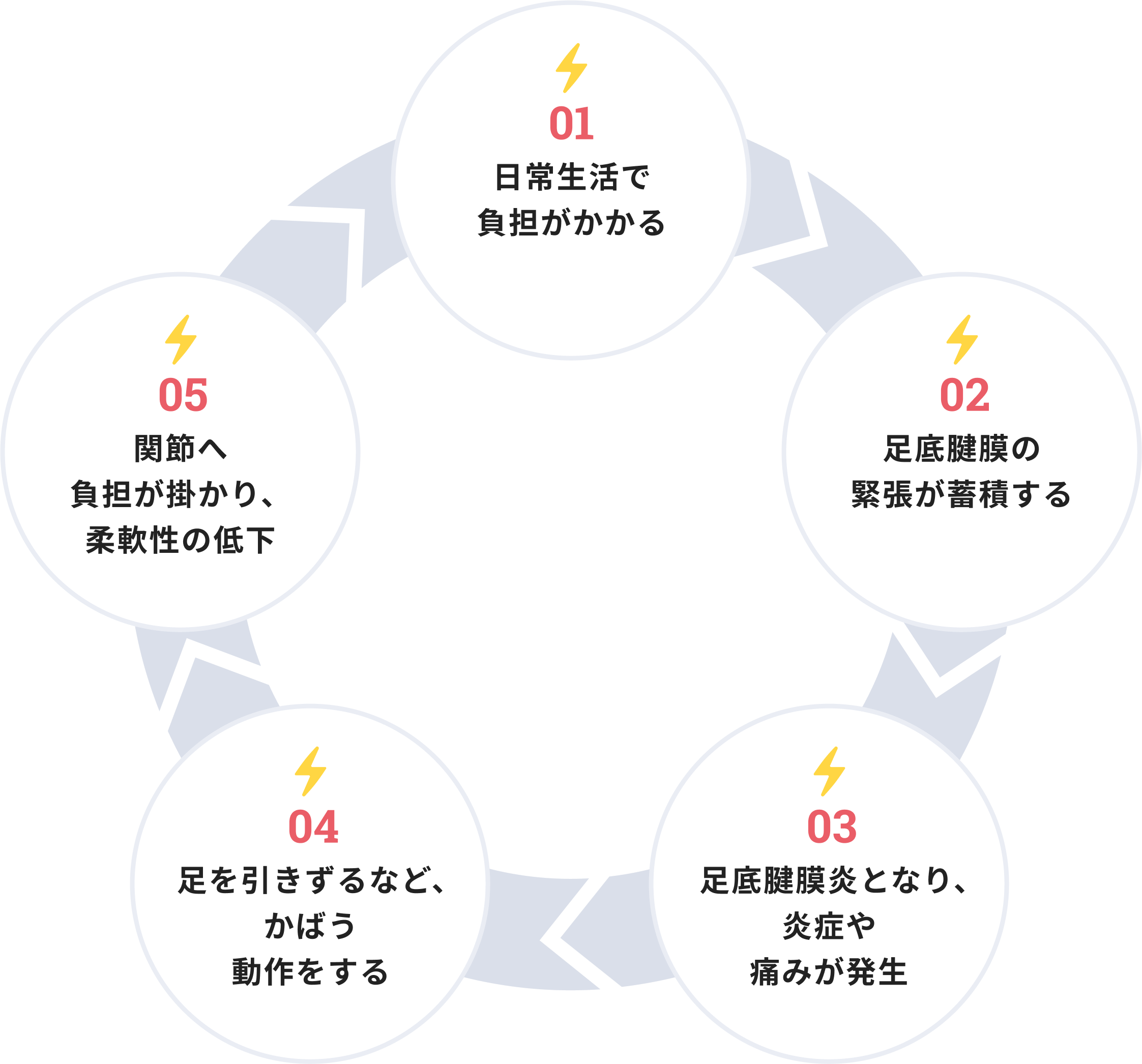 サイクル 03足底腱膜炎となり、炎症や痛みが発生